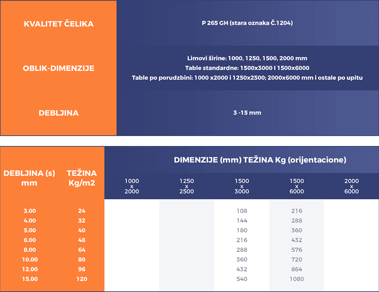 2. TV kotlovski limovi – toplovaljani limovi za kotlove i sudove pod pritiskom, gde su pored mehaničkih važna i svojstva na temperaturi