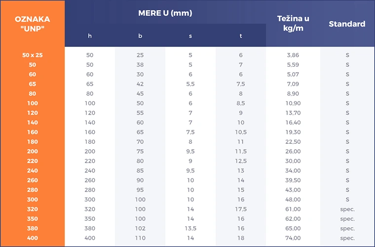 Najbrže je da krenete od statičkog zahteva: raspon, tačke oslonca i opterećenja, zatim odaberete dimenziju UNP profila i kvalitet čelika prema projektu (S235/S275/S355). Ako imate specifikaciju, pošaljite je, potvrdićemo dostupnost.