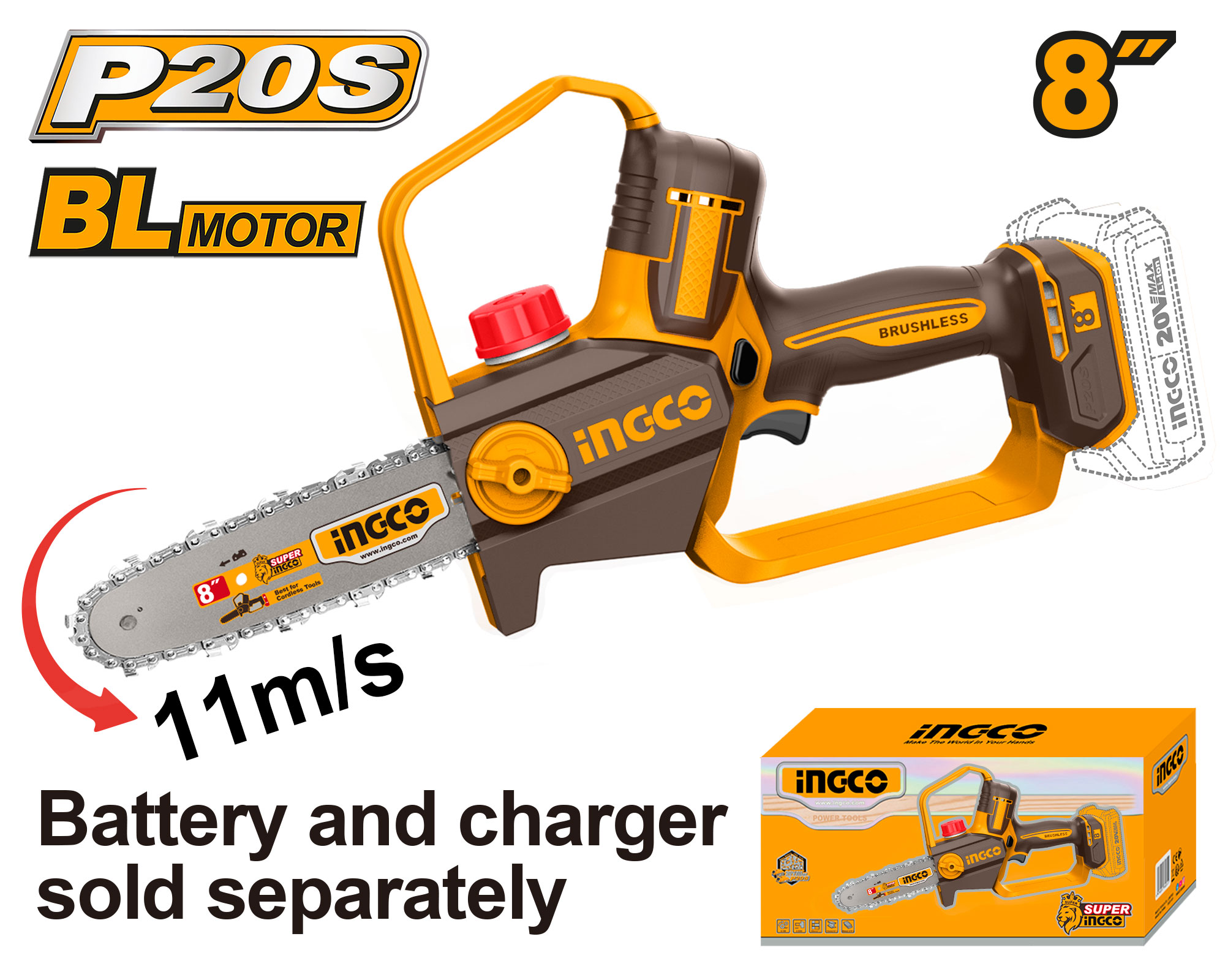 Kompaktna i snažna akumulatorska lančana testera sa motorom bez četkica, namenjena za orezivanje grana, rad u dvorištu i lakše radove sa drvetom. Zahvaljujući automatskom podmazivanju lanca, obezbeđuje dugotrajan i pouzdan rad uz minimalno održavanje.