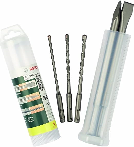 3 SDS-plus burgije sa kvalitetnom oštricom od tvrdog metala za dug životni vek. Spiralni oblik za brzo odvođenje izbušene prašine.
